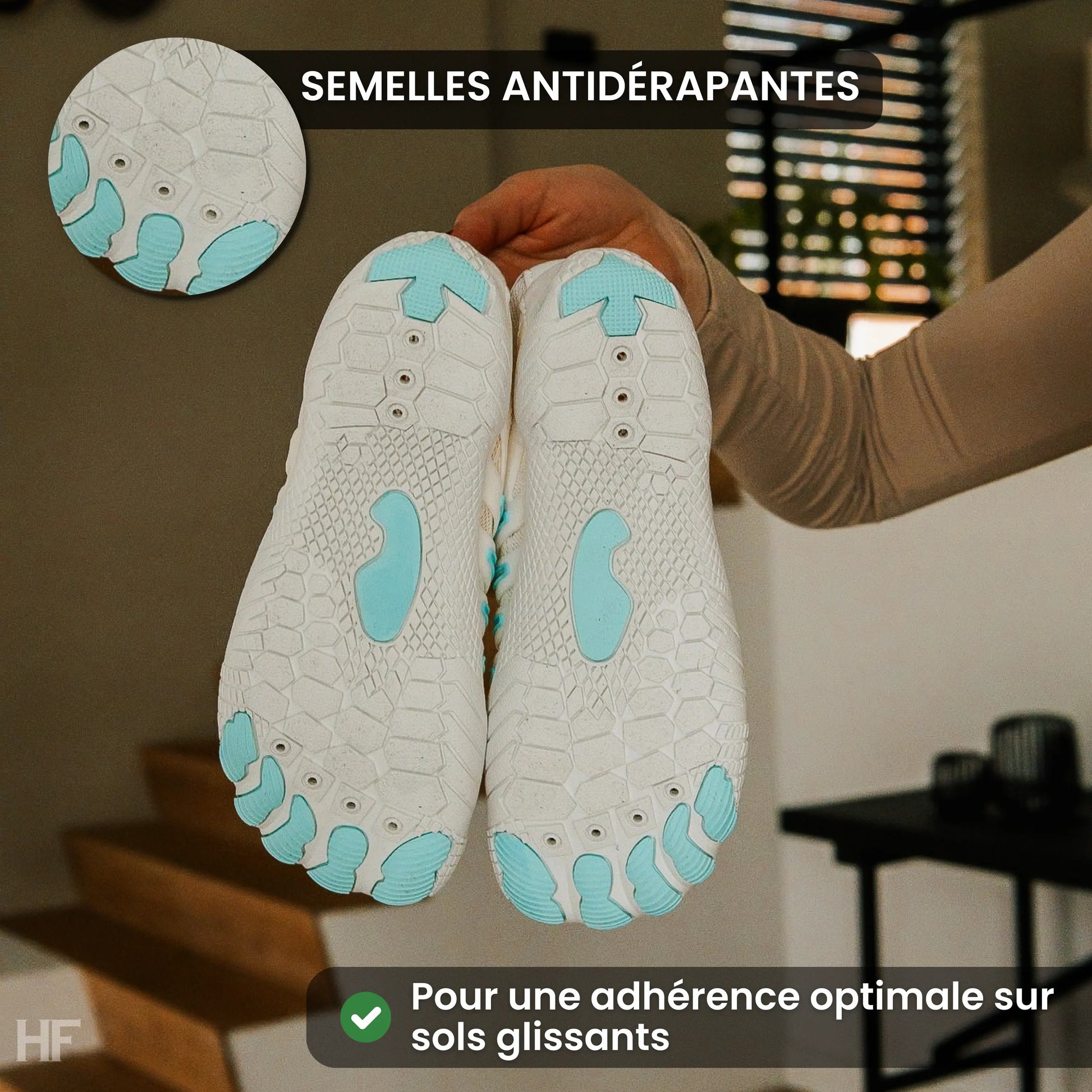 The ultra-light and flexible 4 mm thin sole allows a natural gait, promoting the natural alignment of your feet. This effectively prevents common discomforts in your knees, hips, back, ankles, and feet.